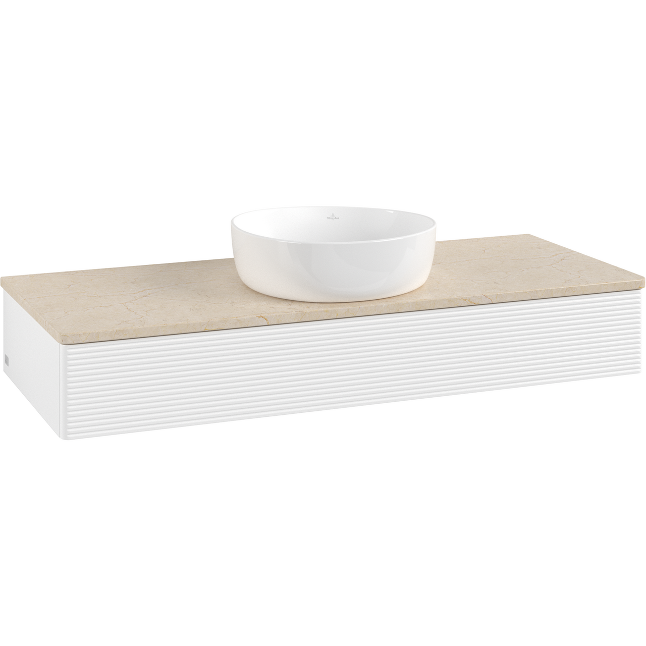 V&b antao servantskap 1 skuff rillet 1200x190x500 u/kranhull m/lys matt hvit/créme