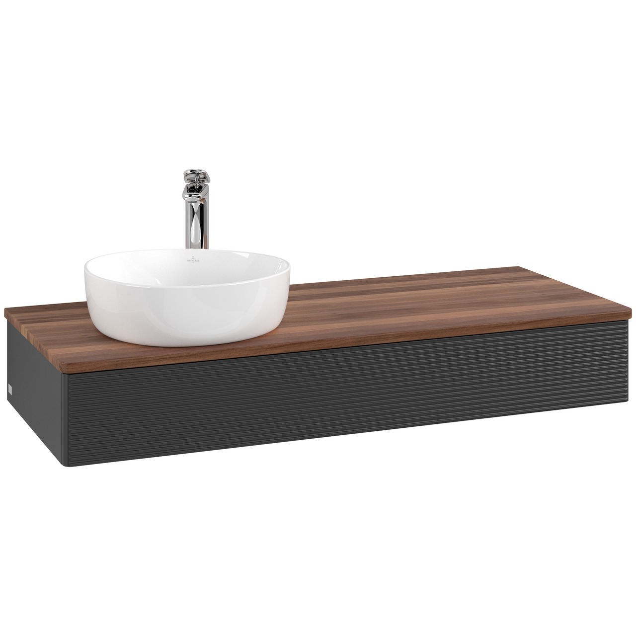 V&b antao servantskap 1 skuff rillet 1200x190x500 venstre m/kranhull matt sort/valnøtt