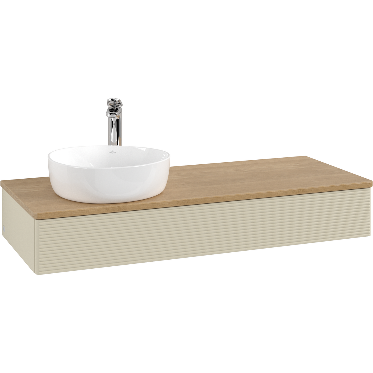 V&b antao servantskap 1 skuff rillet 1200x190x500 venstre m/kranhull m/lys silkegrå/eik