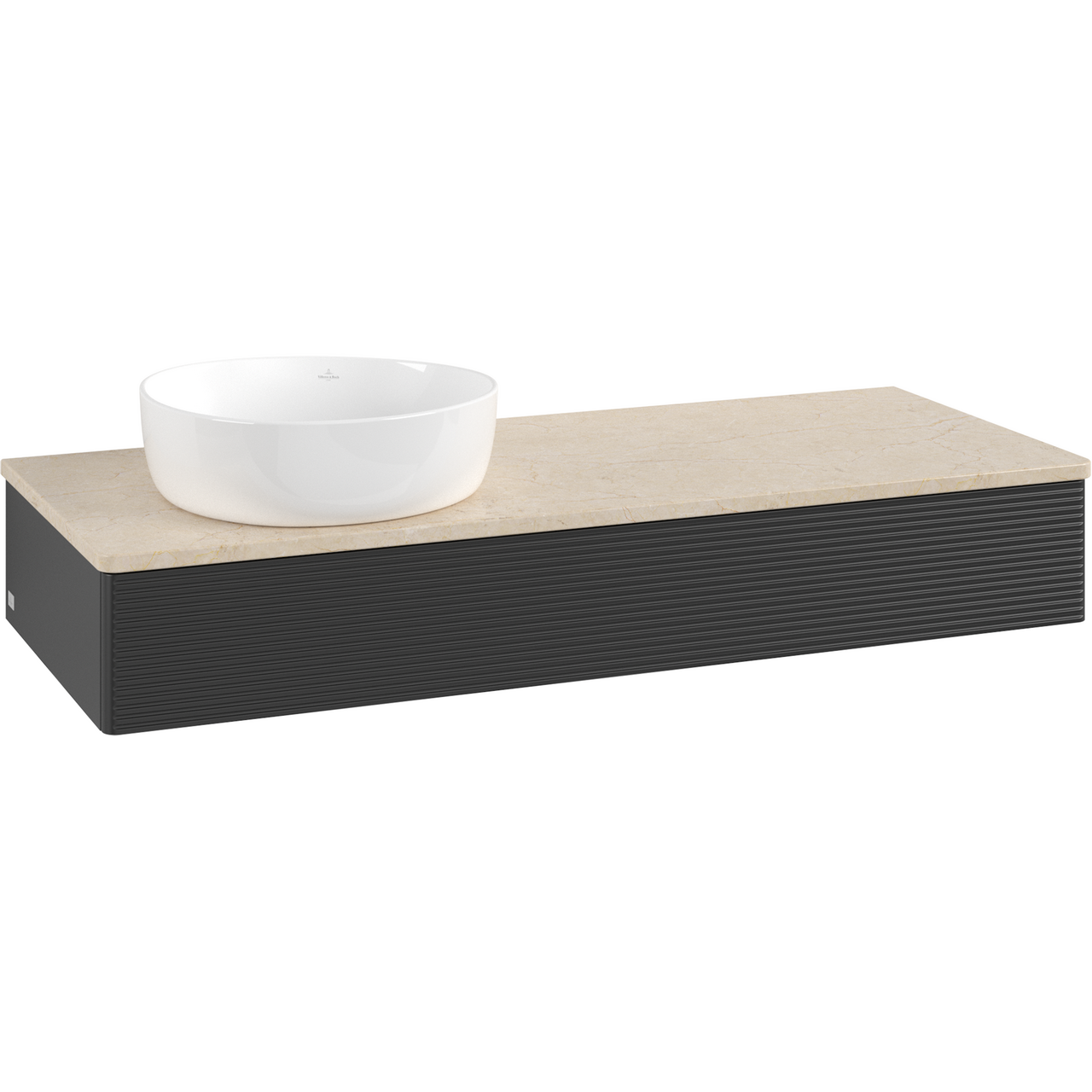 V&B ANTAO SERVANTSKAP 1 SKUFF RILLET 1200X190X500 VENSTRE U/KRANHULL M/LYS MATT SORT/CRÉME