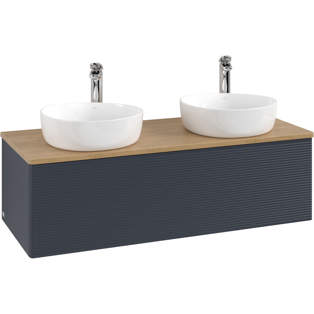 V&b antao servantskap 1 skuff rillet 1200x360x500 for 2 serv. m/kranhull blå/eik