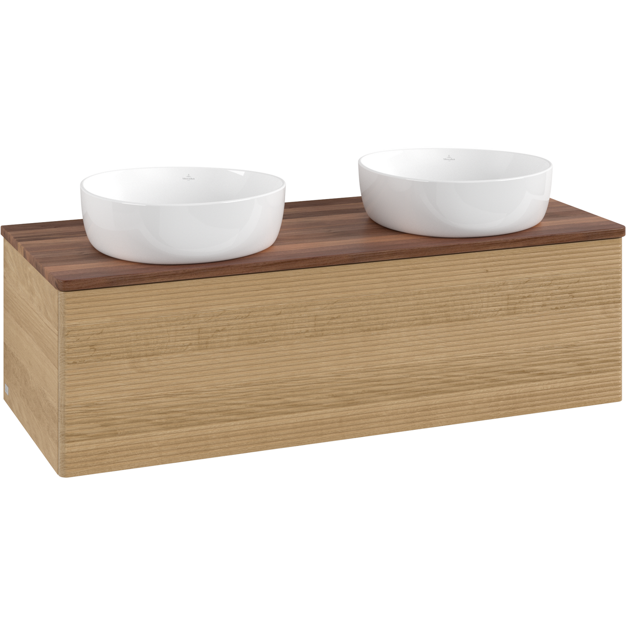 V&b antao servantskap 1 skuff rillet 1200x360x500 for 2 serv. u/kranhull m/lys eik/valnøtt
