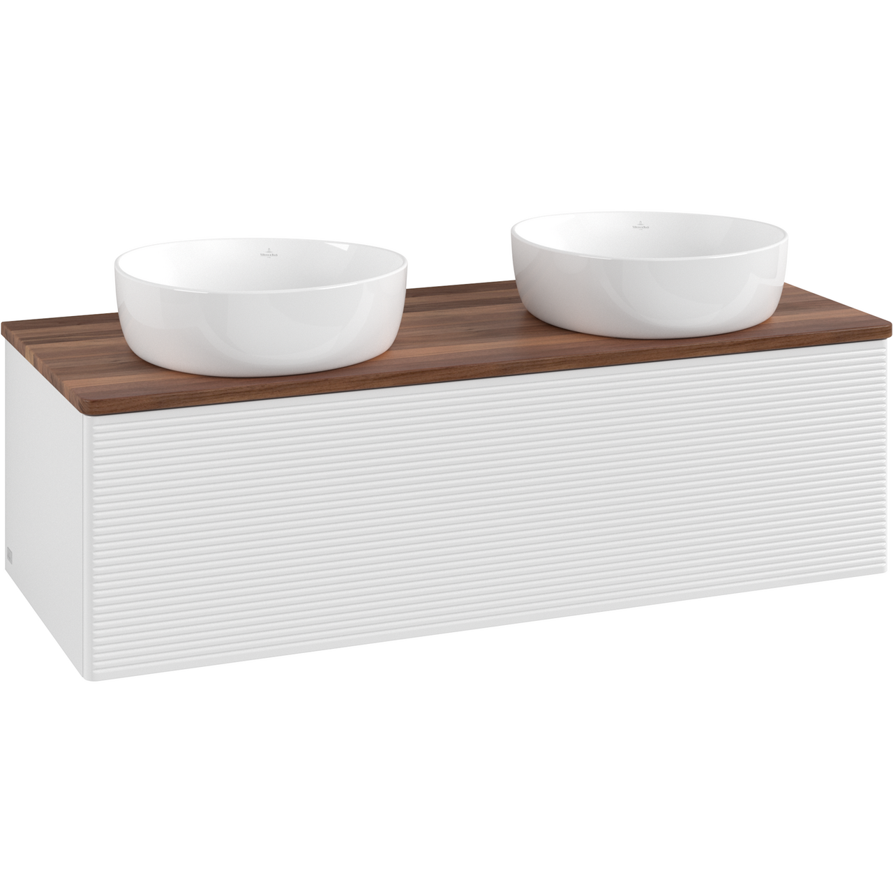 V&b antao servantskap 1 skuff rillet 1200x360x500 for 2 serv. u/kranhull m/lys hvit/valnøtt