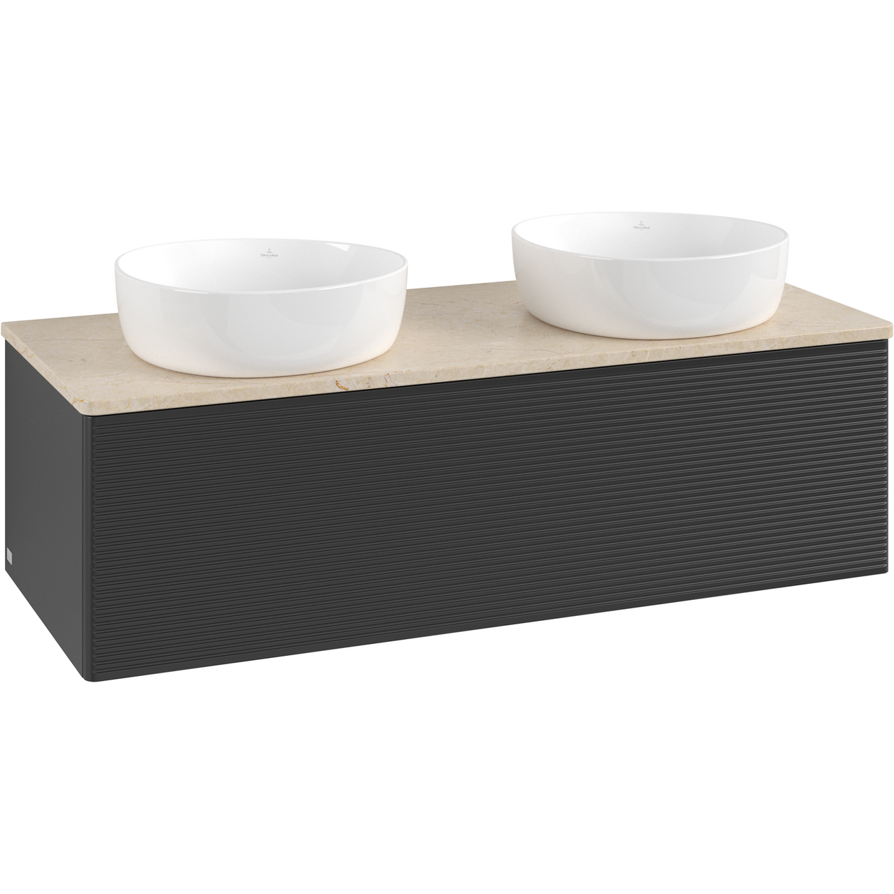 V&B ANTAO SERVANTSKAP 1 SKUFF RILLET 1200X360X500 FOR 2 SERV. U/KRANHULL M/LYS MATT SORT/CRÉME