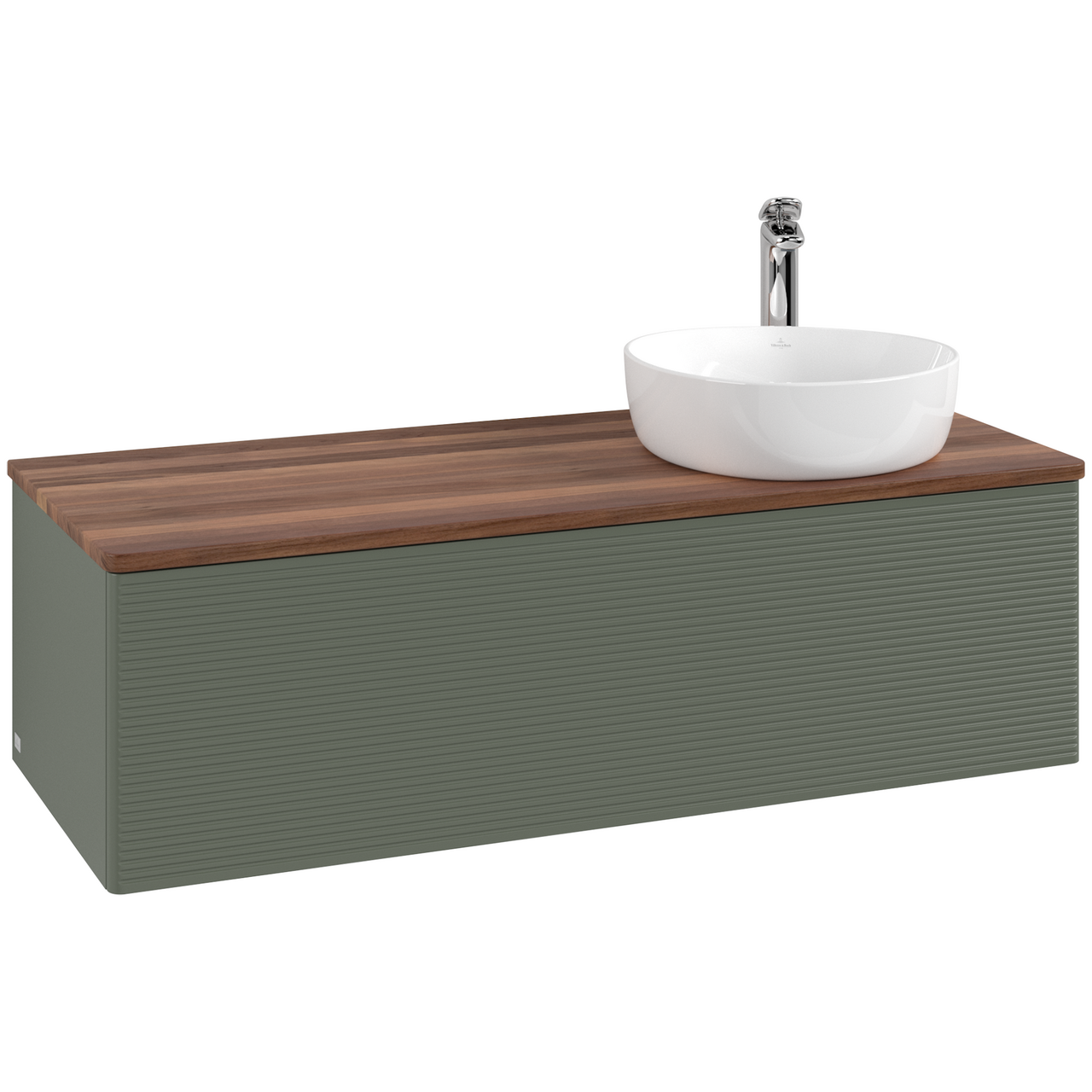 V&B ANTAO SERVANTSKAP 1 SKUFF RILLET 1200X360X500 HØYRE M/KRANHULL GRØNN/VALNØTT