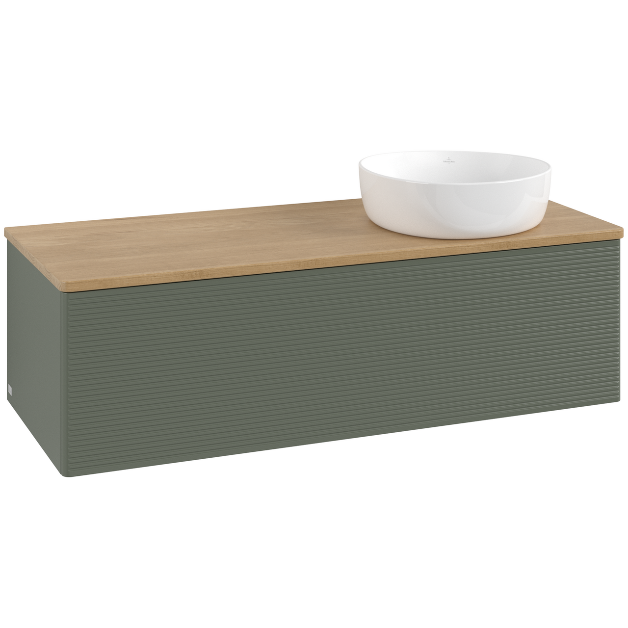 V&b antao servantskap 1 skuff rillet 1200x360x500 høyre u/kranhull grønn/eik