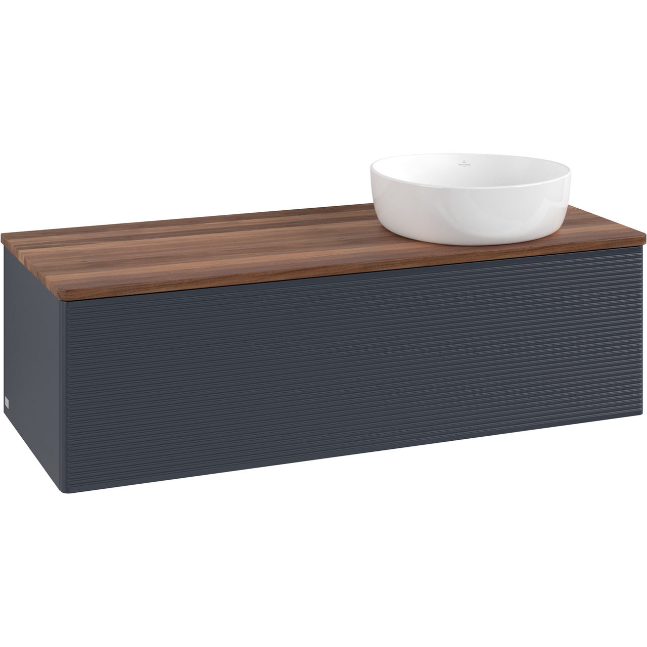 V&b antao servantskap 1 skuff rillet 1200x360x500 høyre u/kranhull m/lys blå/valnøtt