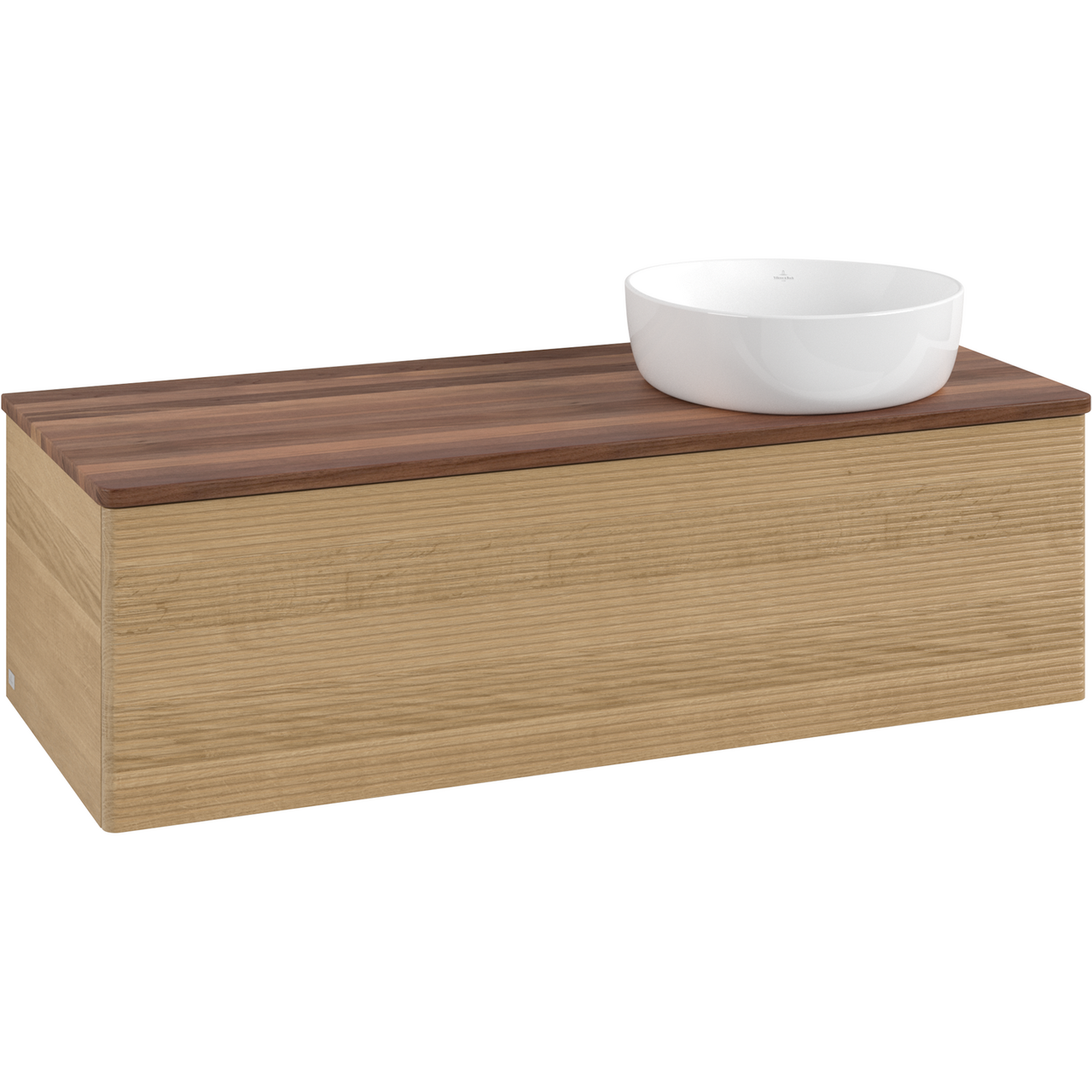 V&b antao servantskap 1 skuff rillet 1200x360x500 høyre u/kranhull m/lys eik/valnøtt