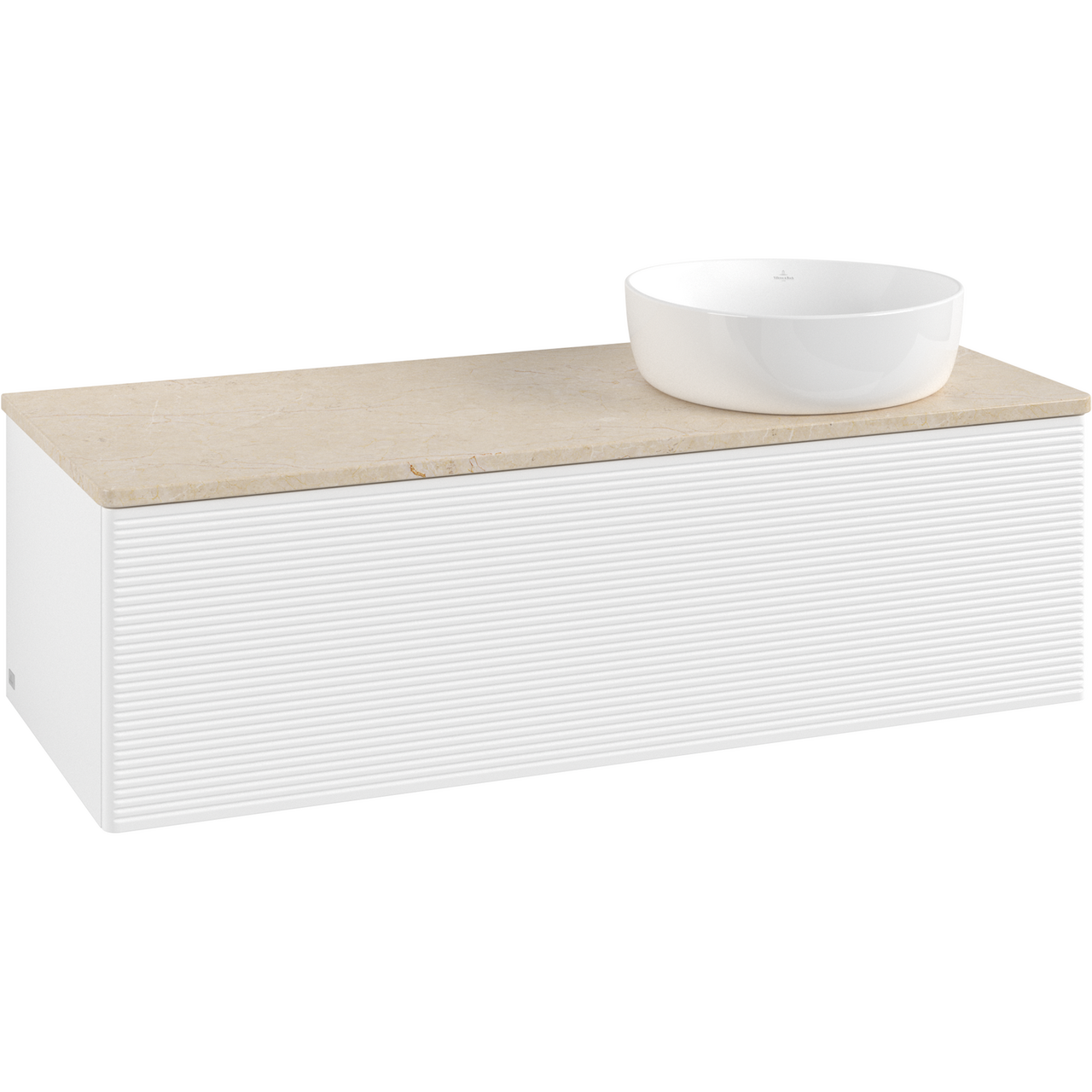 V&b antao servantskap 1 skuff rillet 1200x360x500 høyre u/kranhull m/lys matt hvit/créme