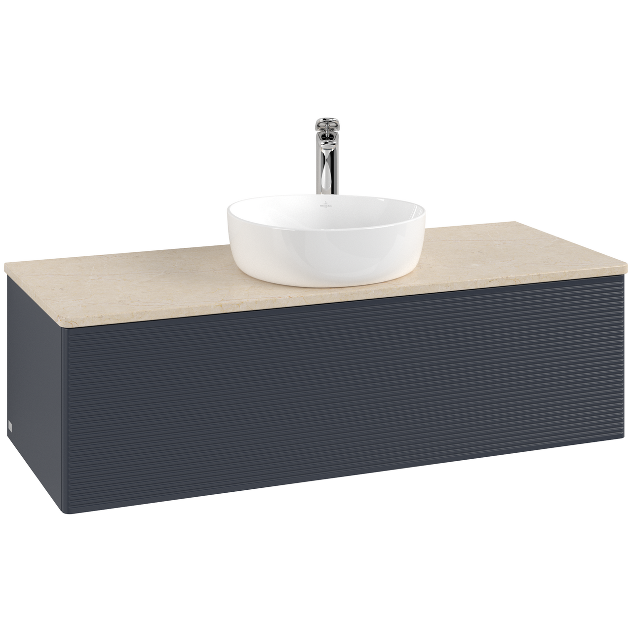 V&b antao servantskap 1 skuff rillet 1200x360x500 m/kranhull blå/créme