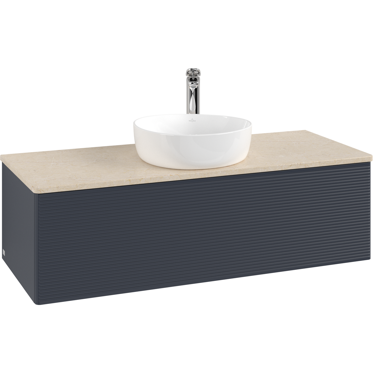 V&b antao servantskap 1 skuff rillet 1200x360x500 m/kranhull m/lys blå/créme