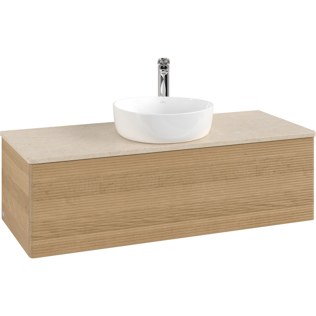 V&b antao servantskap 1 skuff rillet 1200x360x500 m/kranhull m/lys eik/créme
