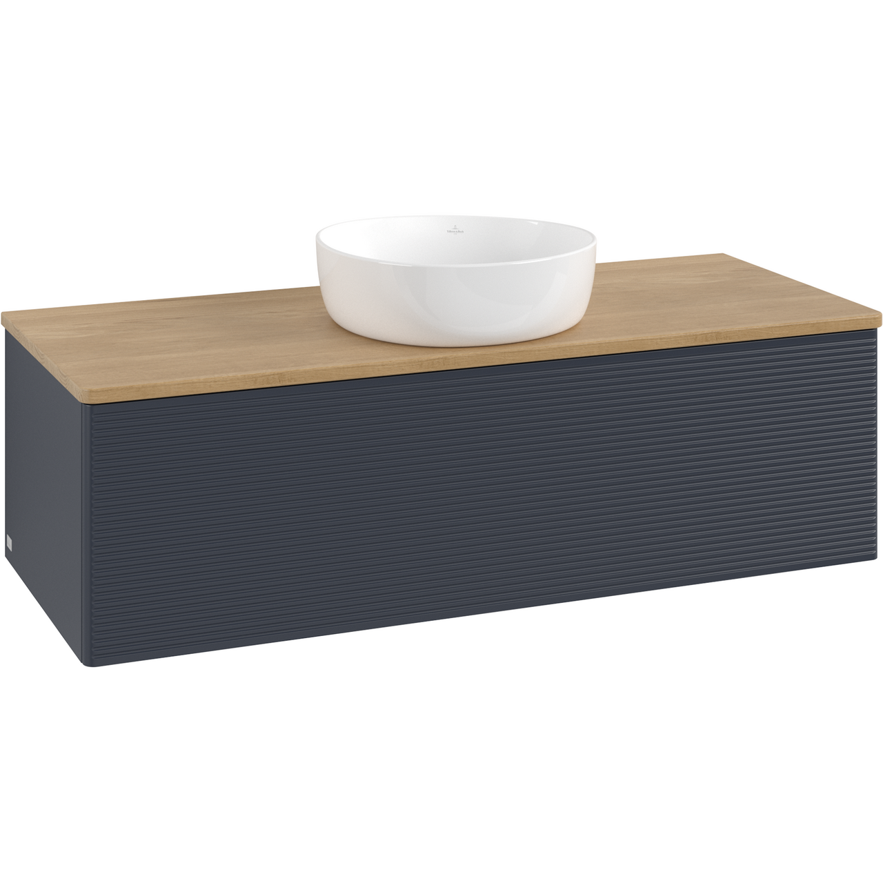V&b antao servantskap 1 skuff rillet 1200x360x500 u/kranhull m/lys blå/eik