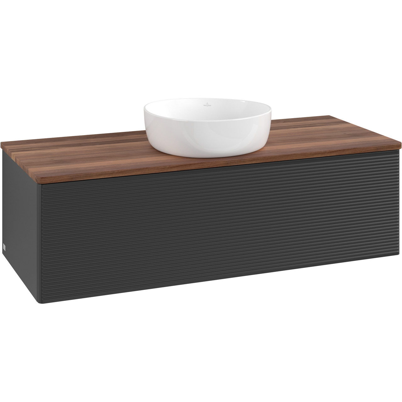 V&b antao servantskap 1 skuff rillet 1200x360x500 u/kranhull m/lys matt sort/valnøtt