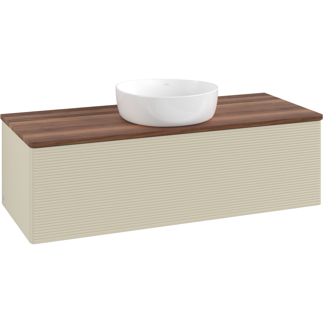 V&b antao servantskap 1 skuff rillet 1200x360x500 u/kranhull m/lys silkegrå/valnøtt