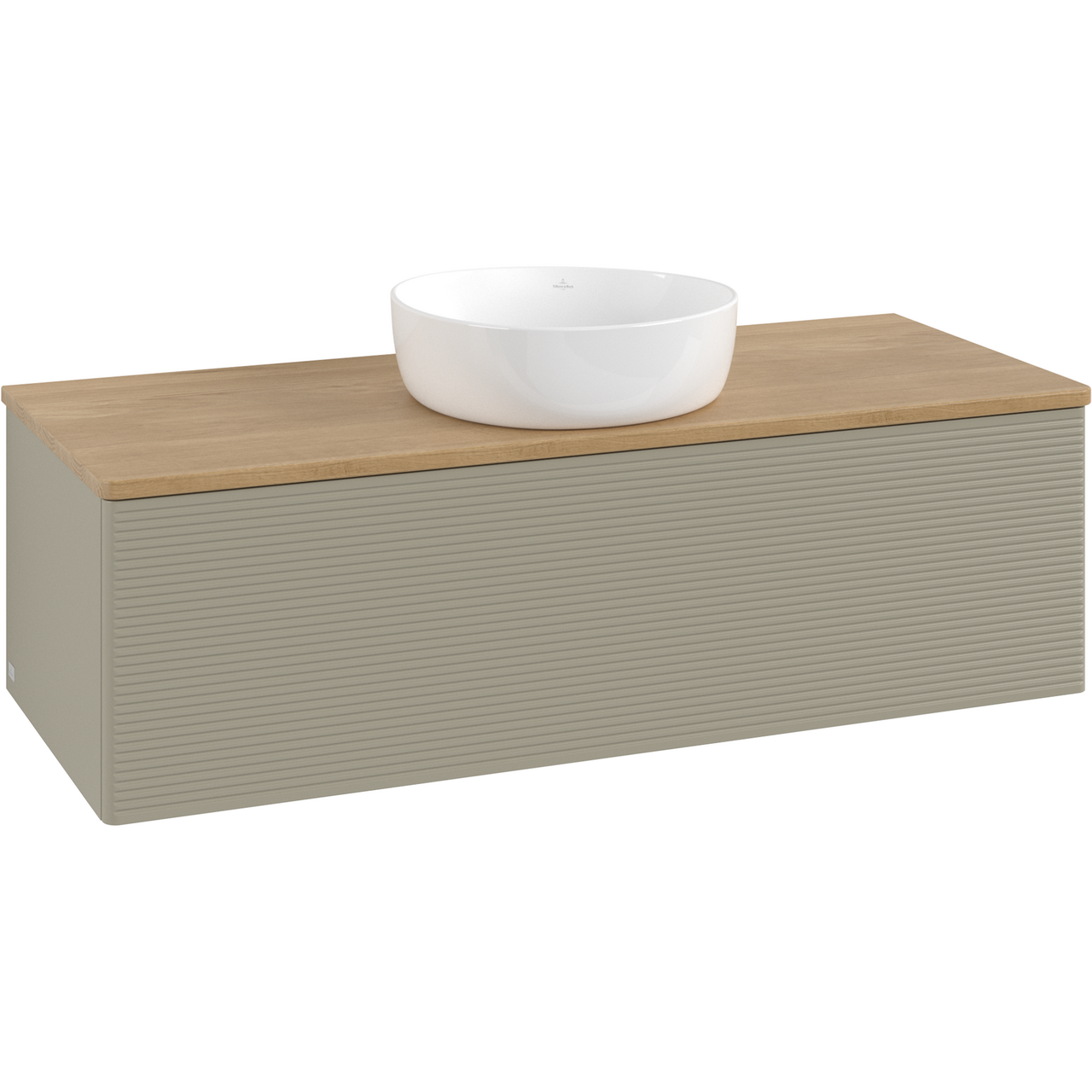 V&b antao servantskap 1 skuff rillet 1200x360x500 u/kranhull m/lys stengrå/eik
