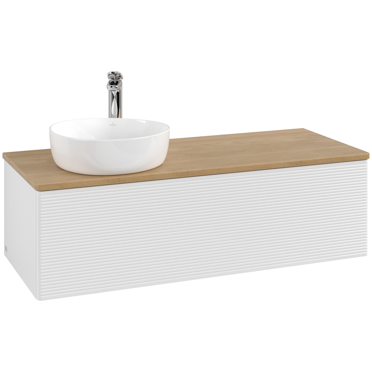 V&b antao servantskap 1 skuff rillet 1200x360x500 venstre m/kranhull hvit/eik