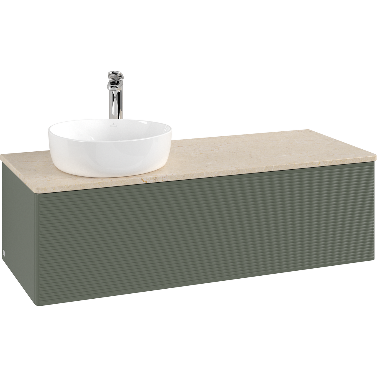 V&B ANTAO SERVANTSKAP 1 SKUFF RILLET 1200X360X500 VENSTRE M/KRANHULL M/LYS GRØNN/CRÉME