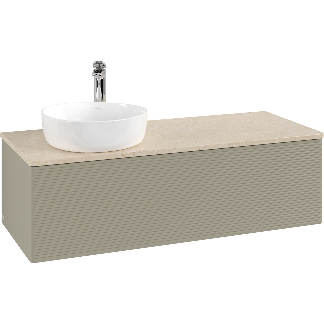 V&b antao servantskap 1 skuff rillet 1200x360x500 venstre m/kranhull m/lys stengrå/créme