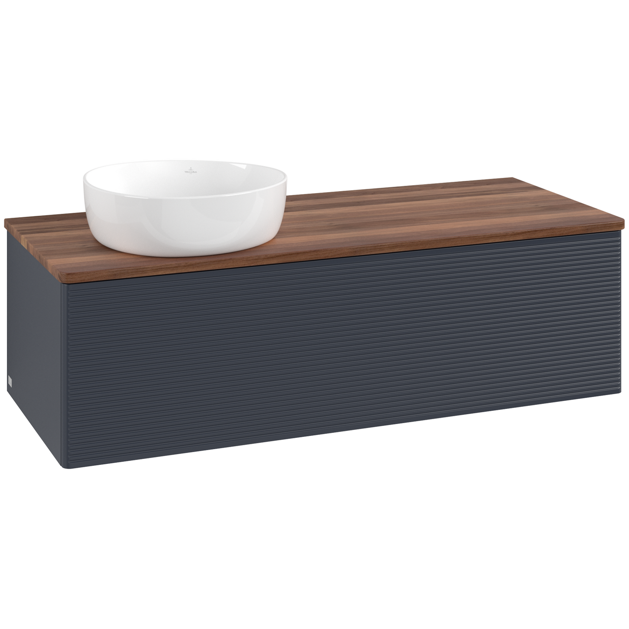 V&b antao servantskap 1 skuff rillet 1200x360x500 venstre u/kranhull blå/valnøtt