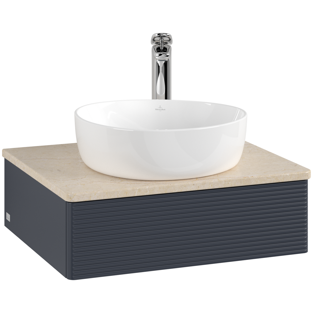 V&b antao servantskap 1 skuff rillet 600x190x500 m/kranhull blå/créme