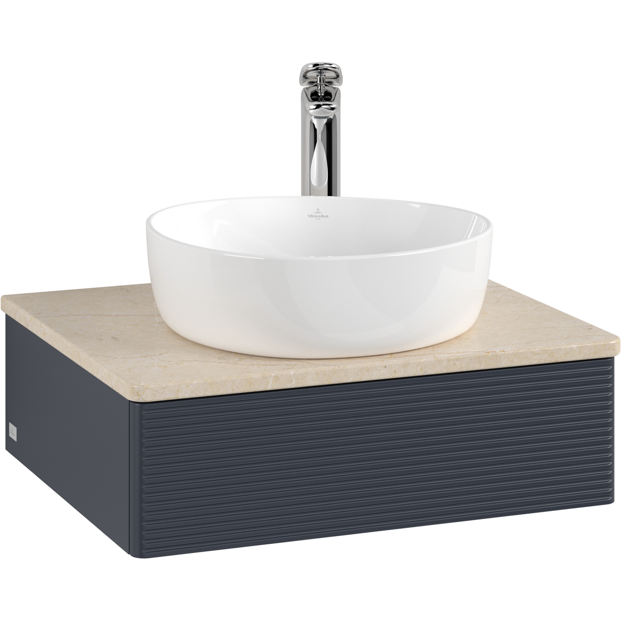 V&b antao servantskap 1 skuff rillet 600x190x500 m/kranhull m/lys blå/créme