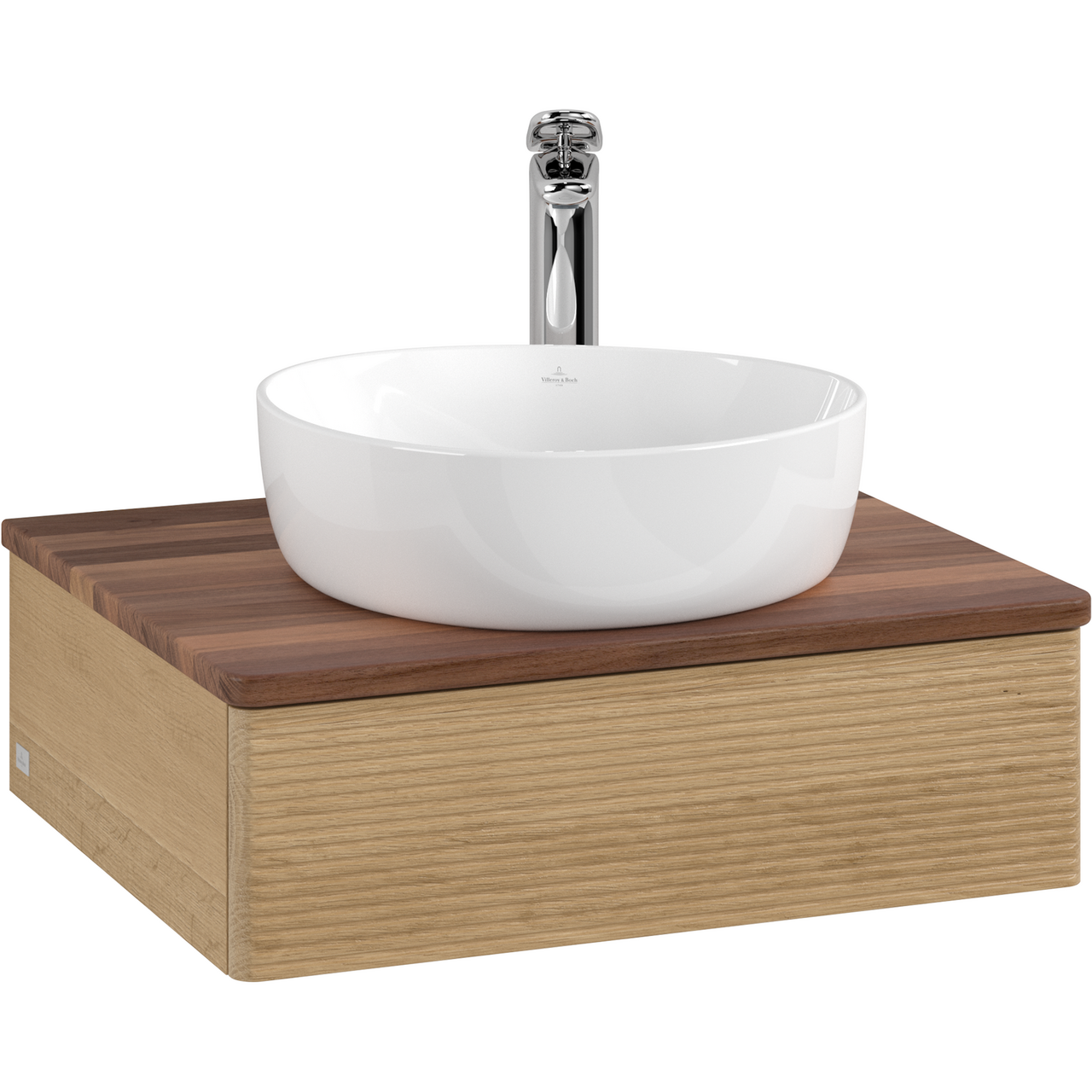 V&b antao servantskap 1 skuff rillet 600x190x500 m/kranhull m/lys eik/valnøtt