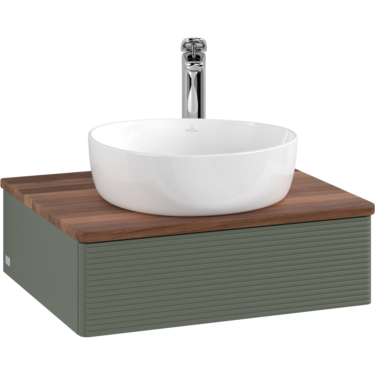 V&b antao servantskap 1 skuff rillet 600x190x500 m/kranhull m/lys grønn/valnøtt