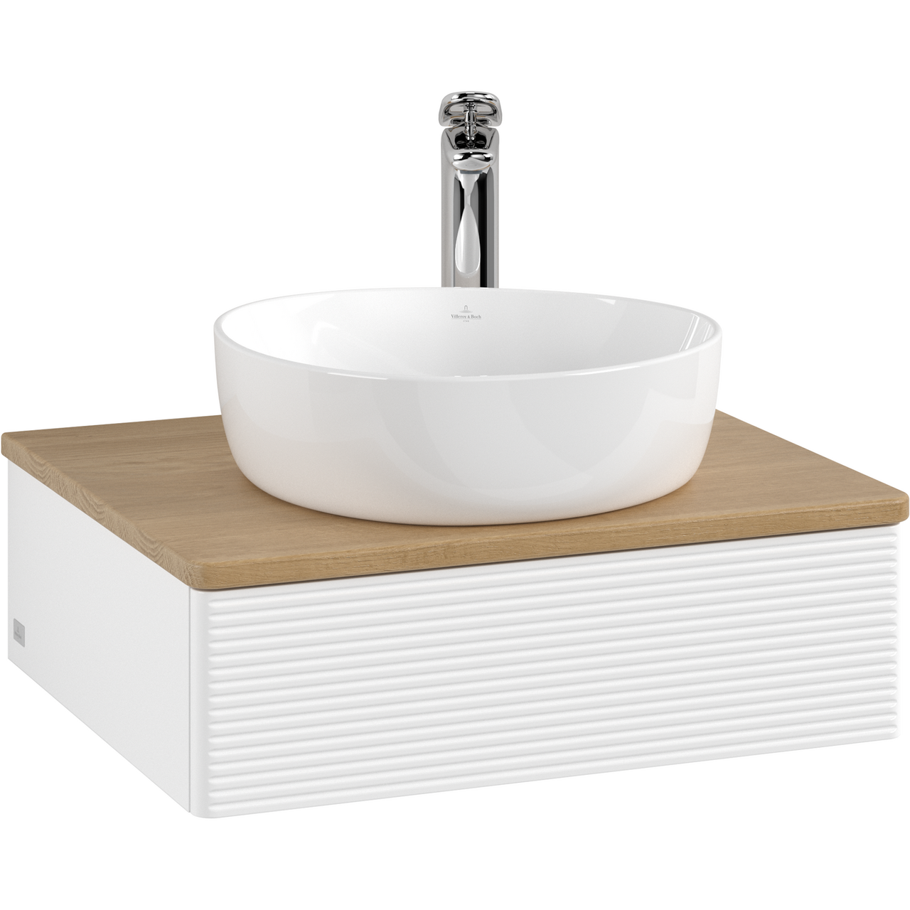 V&b antao servantskap 1 skuff rillet 600x190x500 m/kranhull m/lys matt hvit/eik