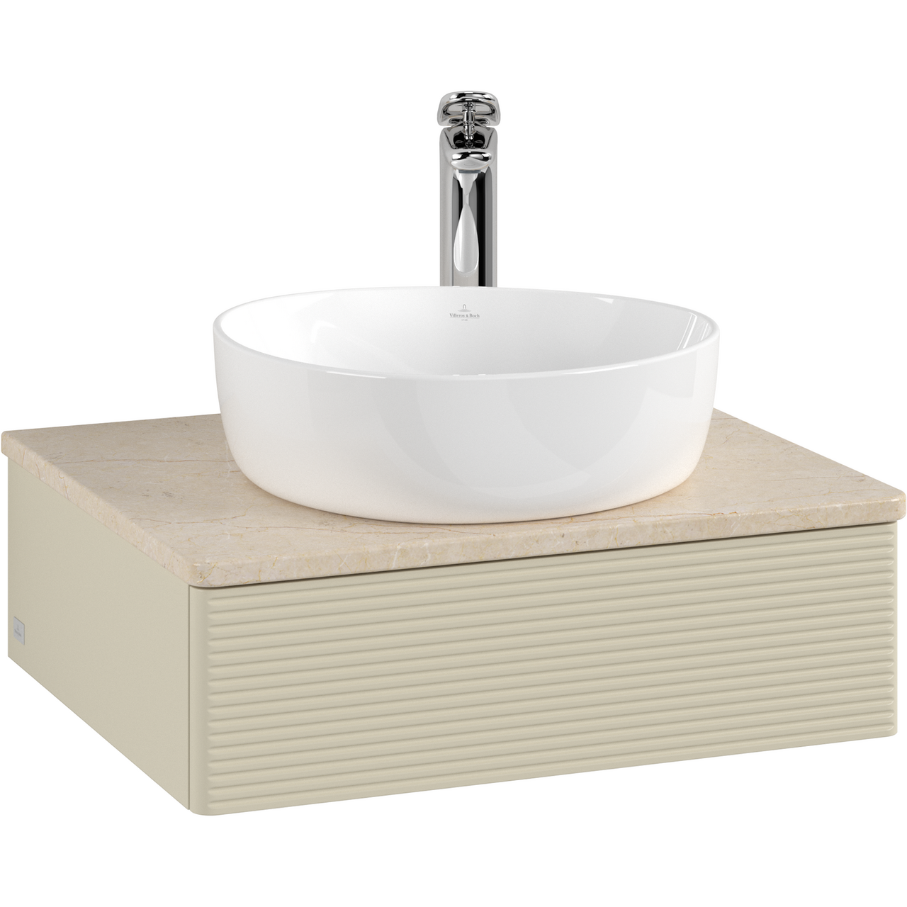V&b antao servantskap 1 skuff rillet 600x190x500 m/kranhull m/lys silkegrå/créme
