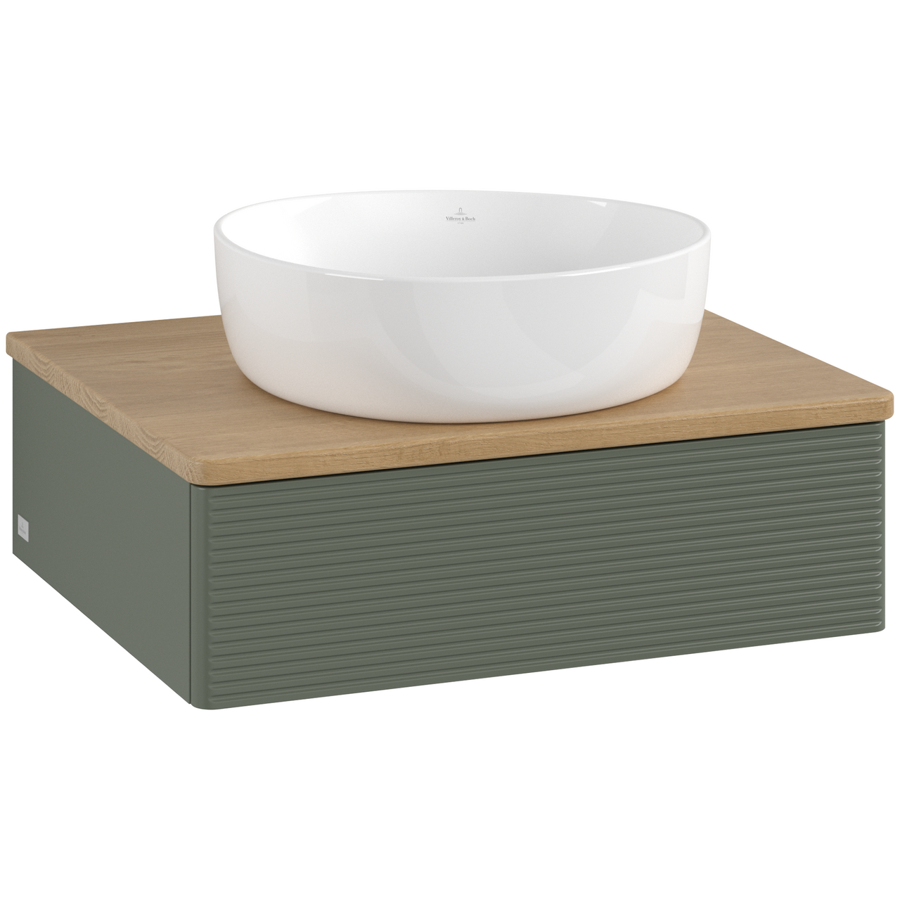 V&b antao servantskap 1 skuff rillet 600x190x500 u/kranhull grønn/eik