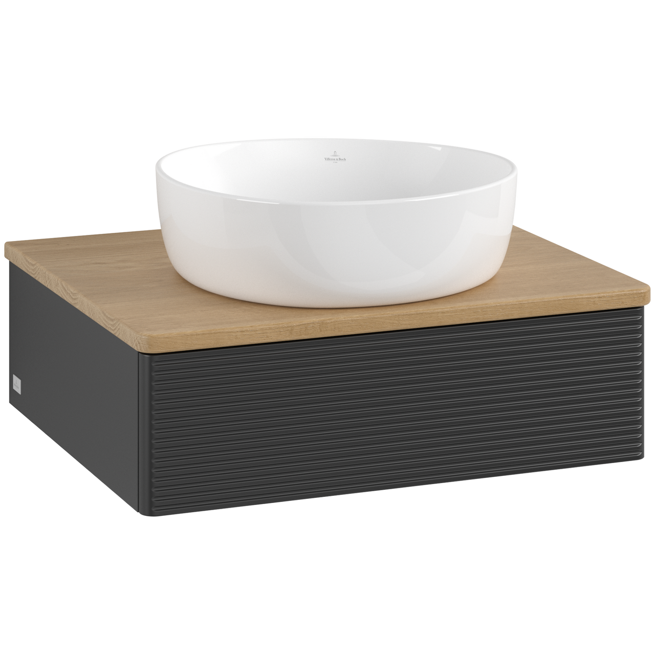 V&b antao servantskap 1 skuff rillet 600x190x500 u/kranhull matt sort/eik