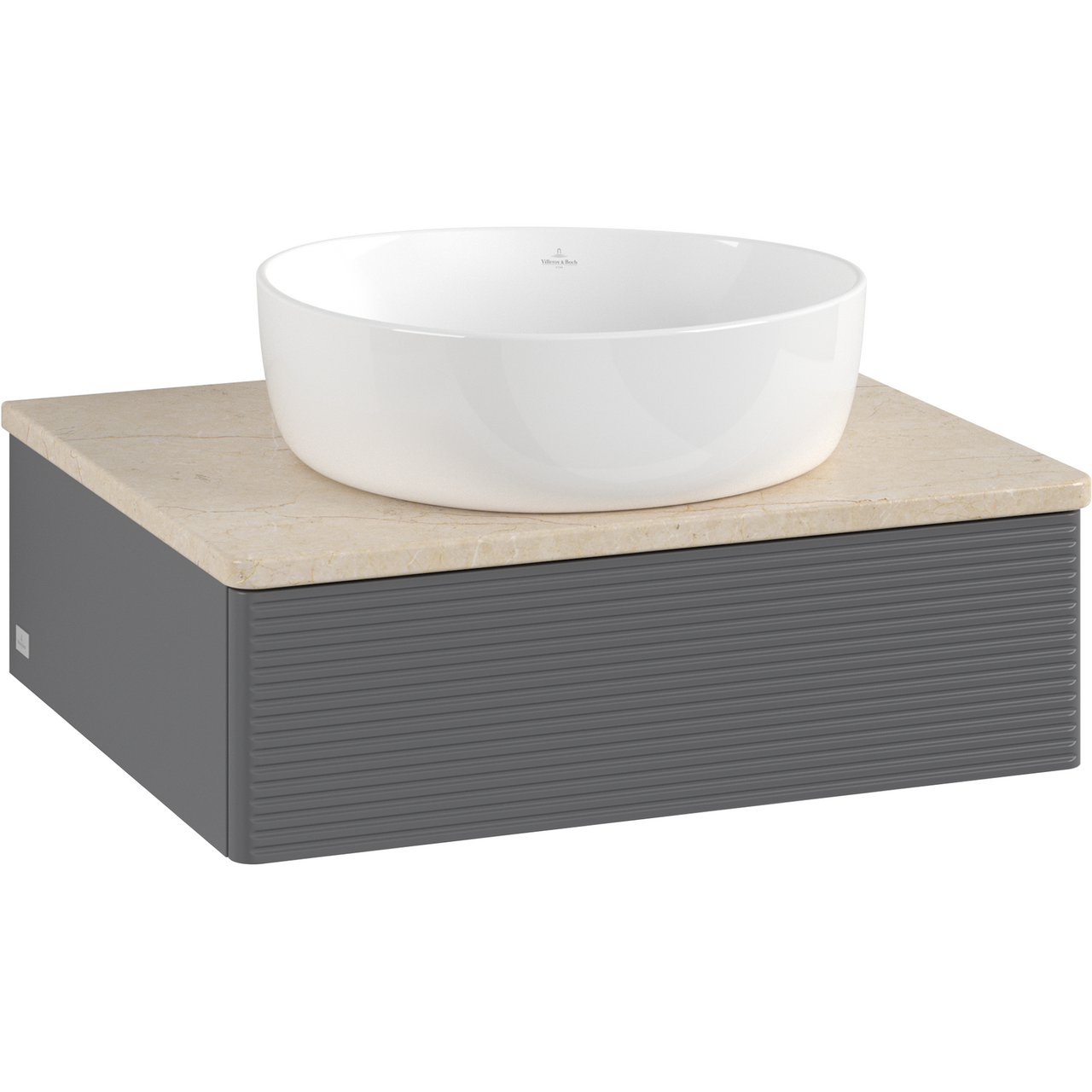 V&B ANTAO SERVANTSKAP 1 SKUFF RILLET 600X190X500 U/KRANHULL M/LYS ANTRASITT/CRÉME