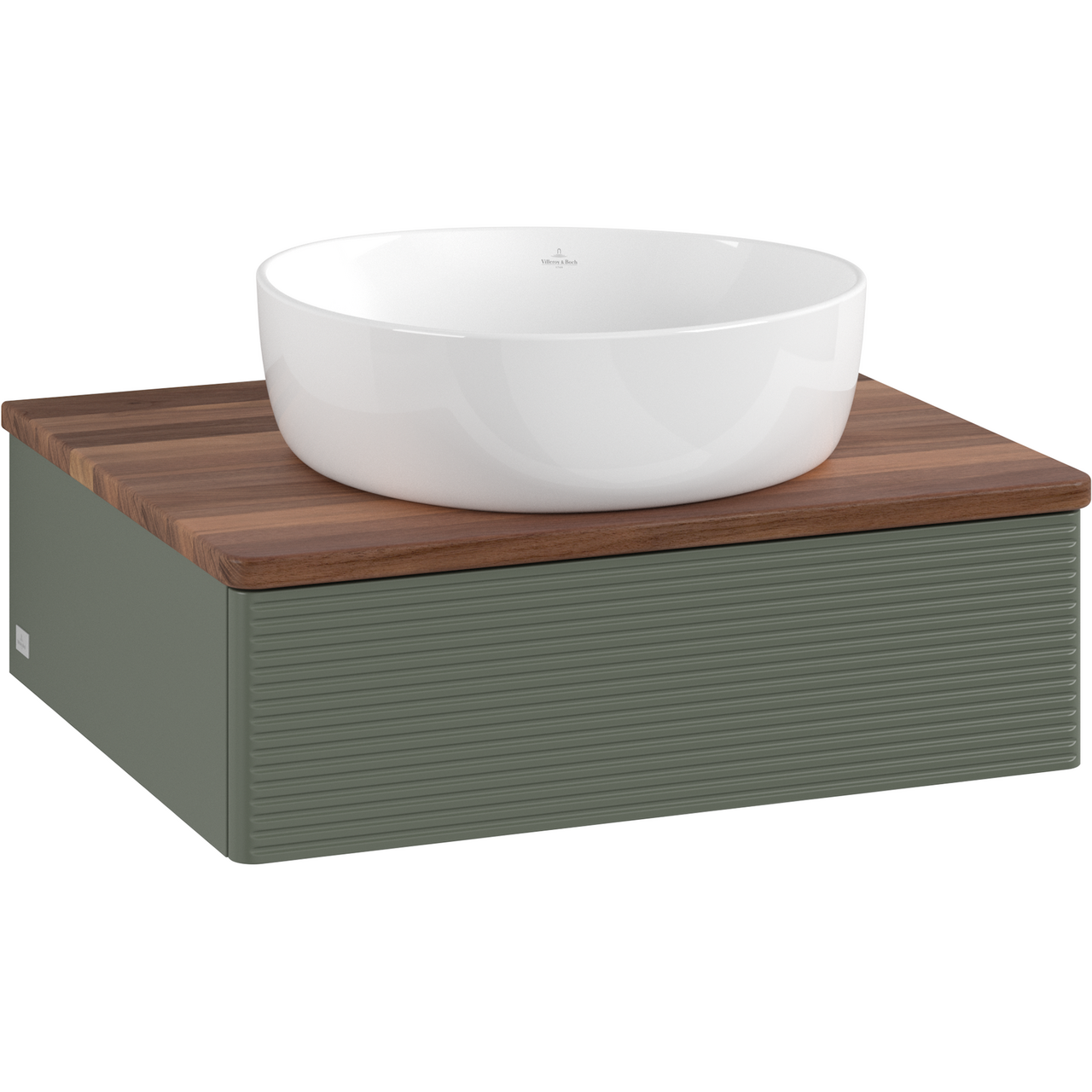 V&b antao servantskap 1 skuff rillet 600x190x500 u/kranhull m/lys grønn/valnøtt