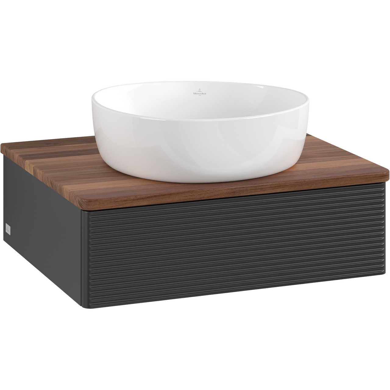 V&b antao servantskap 1 skuff rillet 600x190x500 u/kranhull m/lys matt sort/valnøtt
