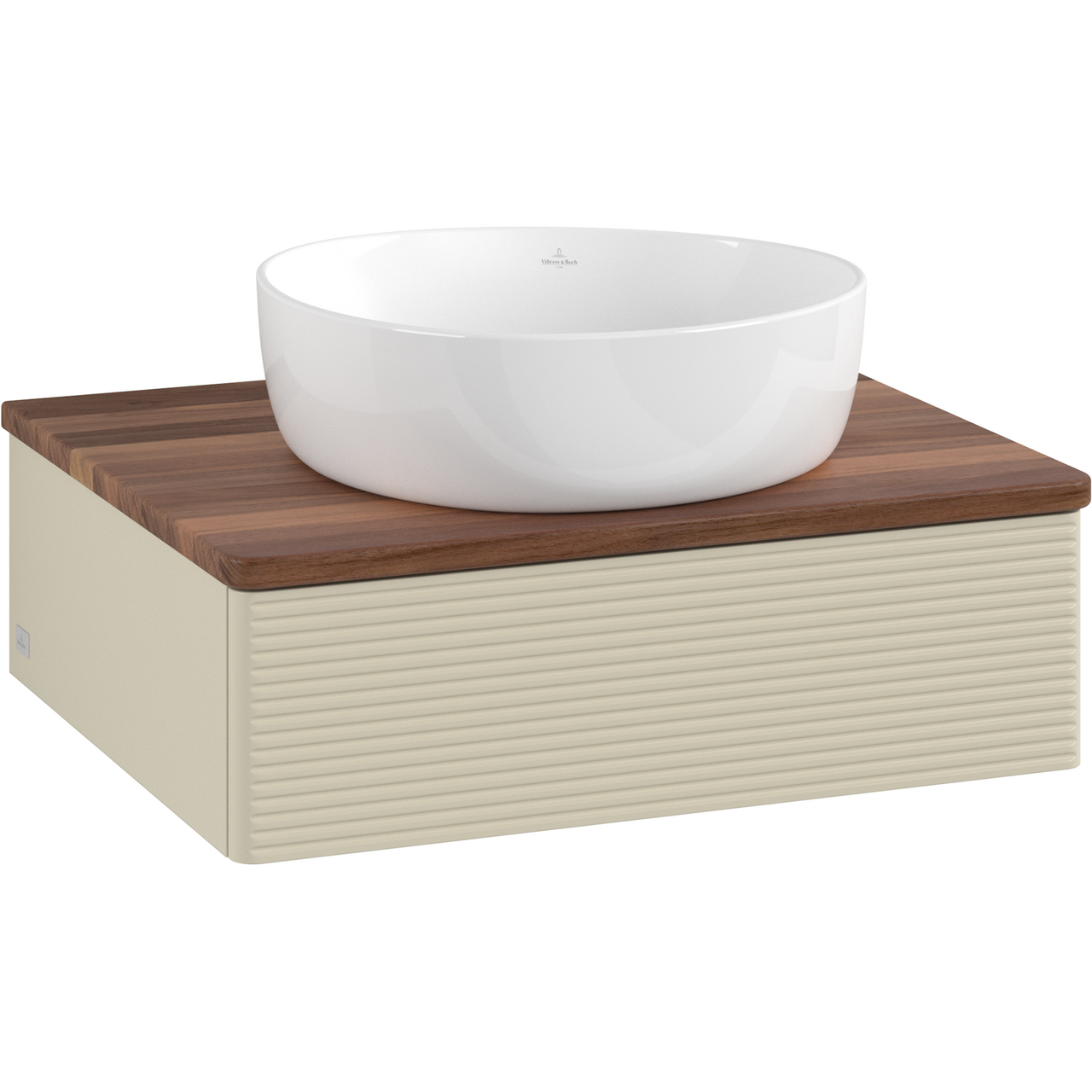 V&b antao servantskap 1 skuff rillet 600x190x500 u/kranhull m/lys silkegrå/valnøtt