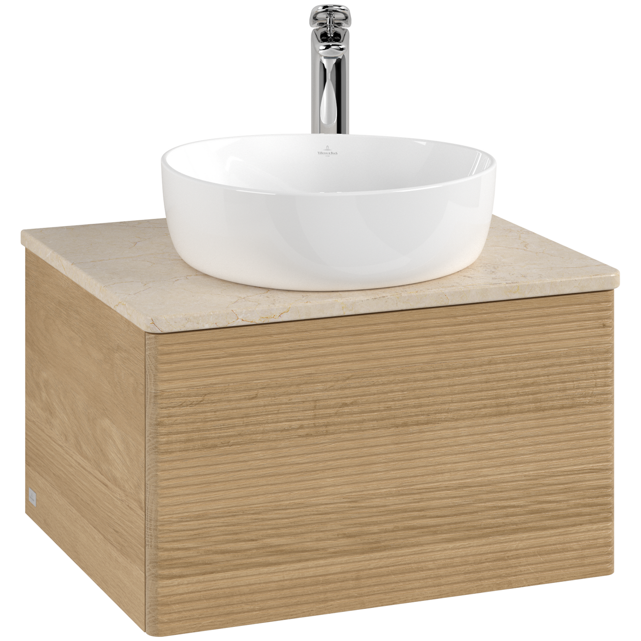 V&b antao servantskap 1 skuff rillet 600x360x500 m/kranhull eik/créme