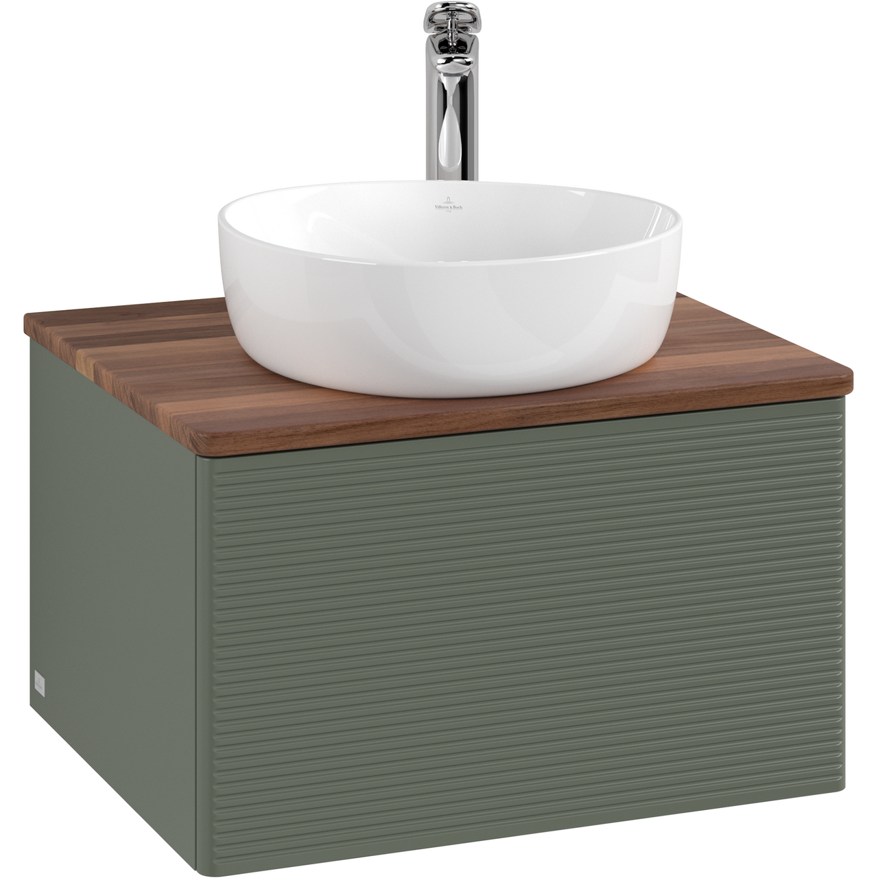 V&b antao servantskap 1 skuff rillet 600x360x500 m/kranhull m/lys grønn/valnøtt