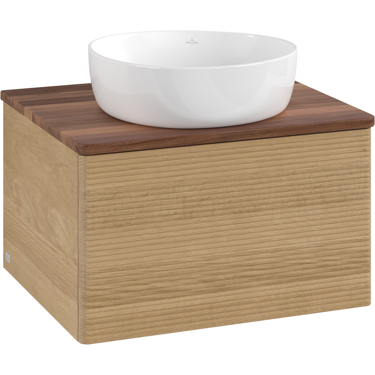 V&b antao servantskap 1 skuff rillet 600x360x500 u/kranhull m/lys eik/valnøtt