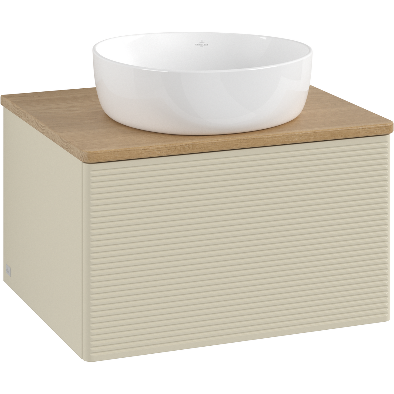V&b antao servantskap 1 skuff rillet 600x360x500 u/kranhull m/lys silkegrå/eik