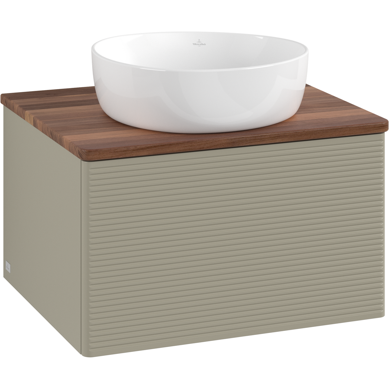 V&b antao servantskap 1 skuff rillet 600x360x500 u/kranhull m/lys stengrå/valnøtt
