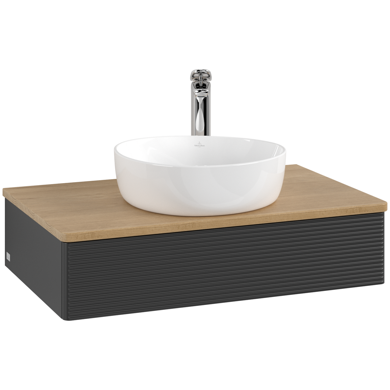 V&b antao servantskap 1 skuff rillet 800x190x500 m/kranhull matt sort/eik