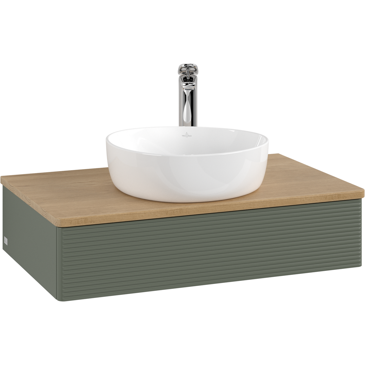 V&b antao servantskap 1 skuff rillet 800x190x500 m/kranhull m/lys grønn/eik
