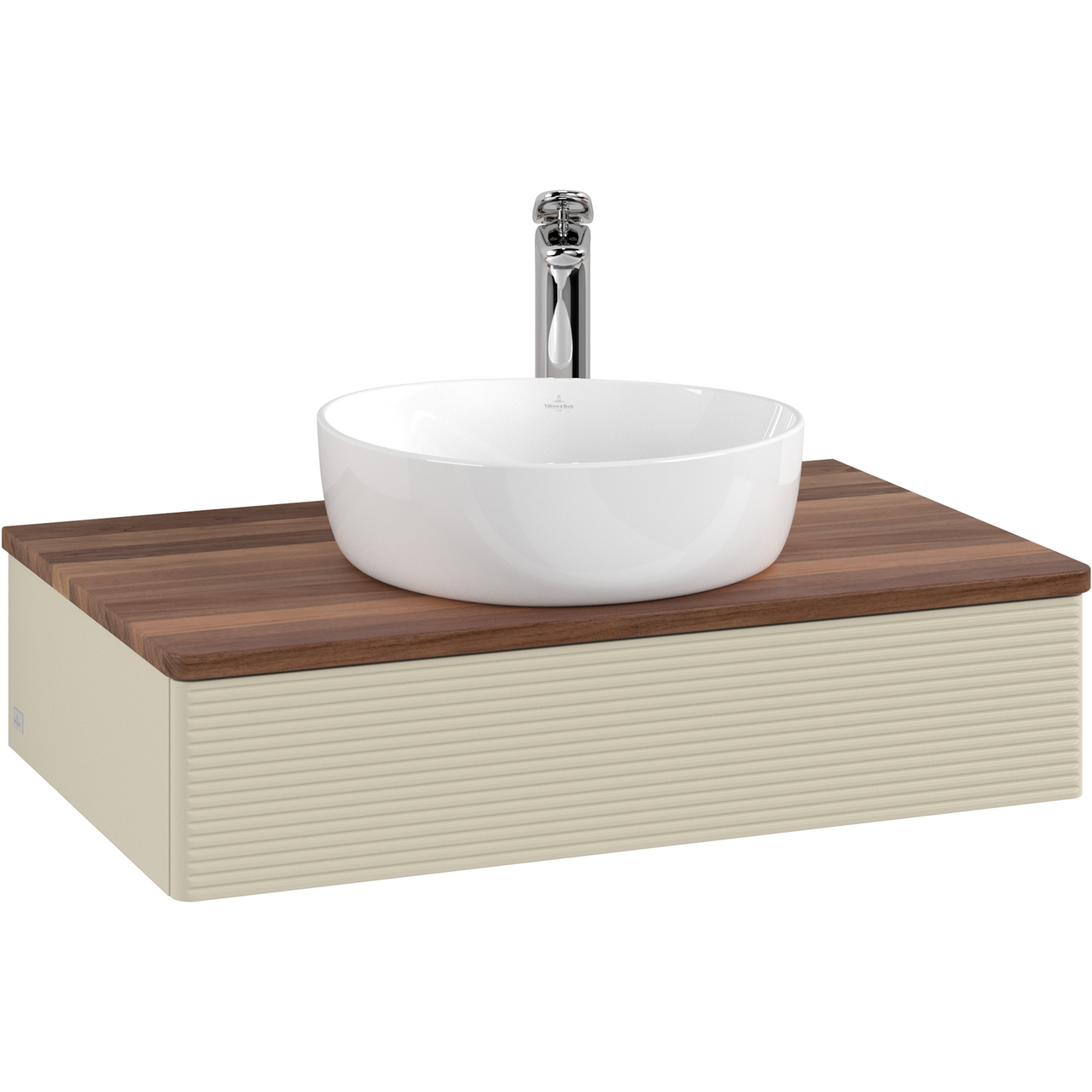 V&b antao servantskap 1 skuff rillet 800x190x500 m/kranhull m/lys silkegrå/valnøtt