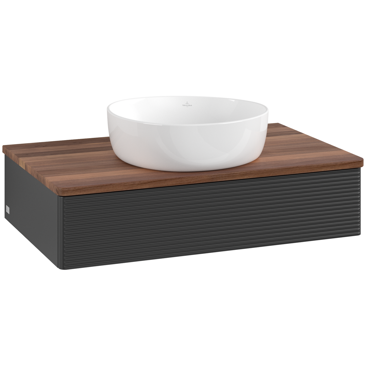 V&b antao servantskap 1 skuff rillet 800x190x500 u/kranhull matt sort/valnøtt