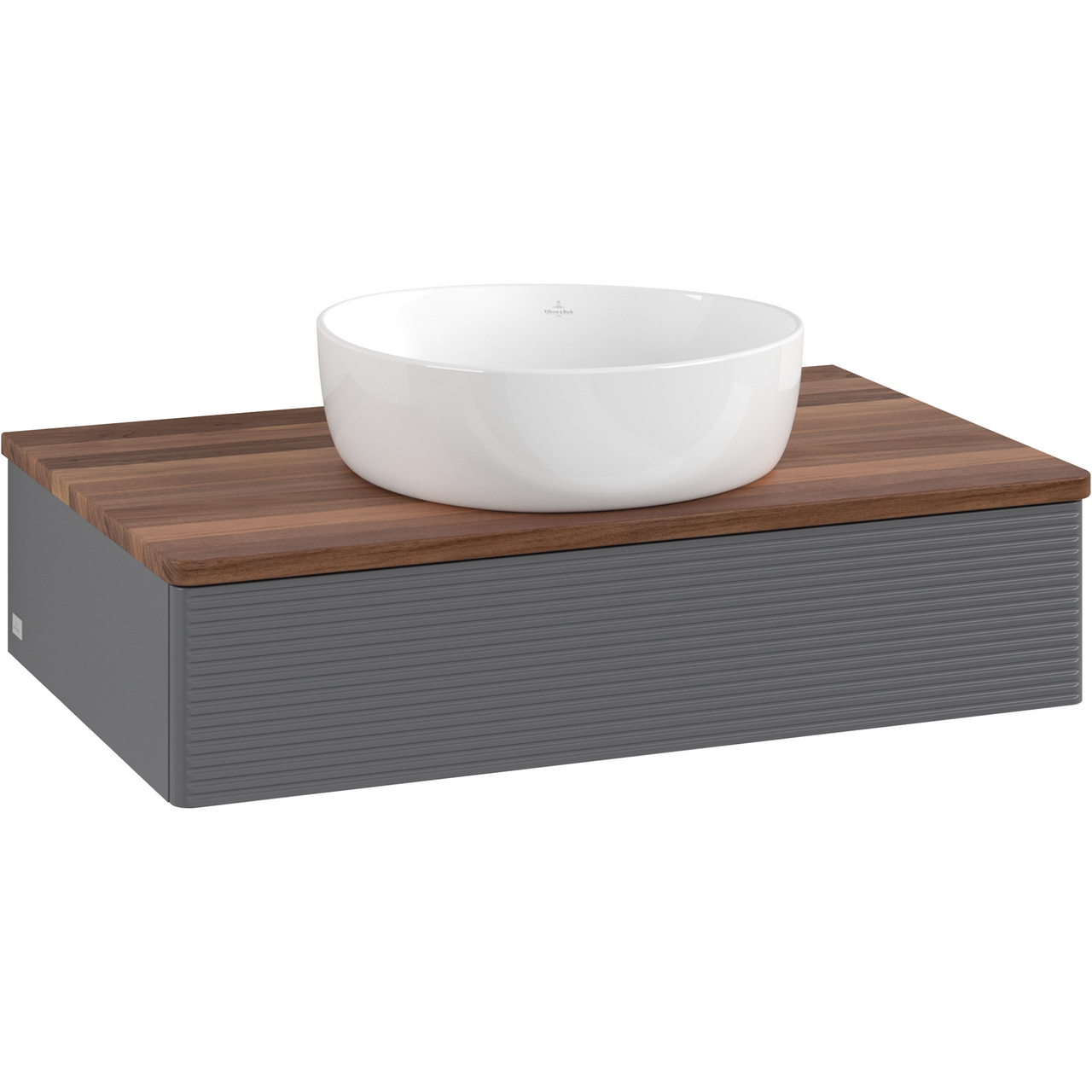 V&b antao servantskap 1 skuff rillet 800x190x500 u/kranhull m/lys antrasitt/valnøtt