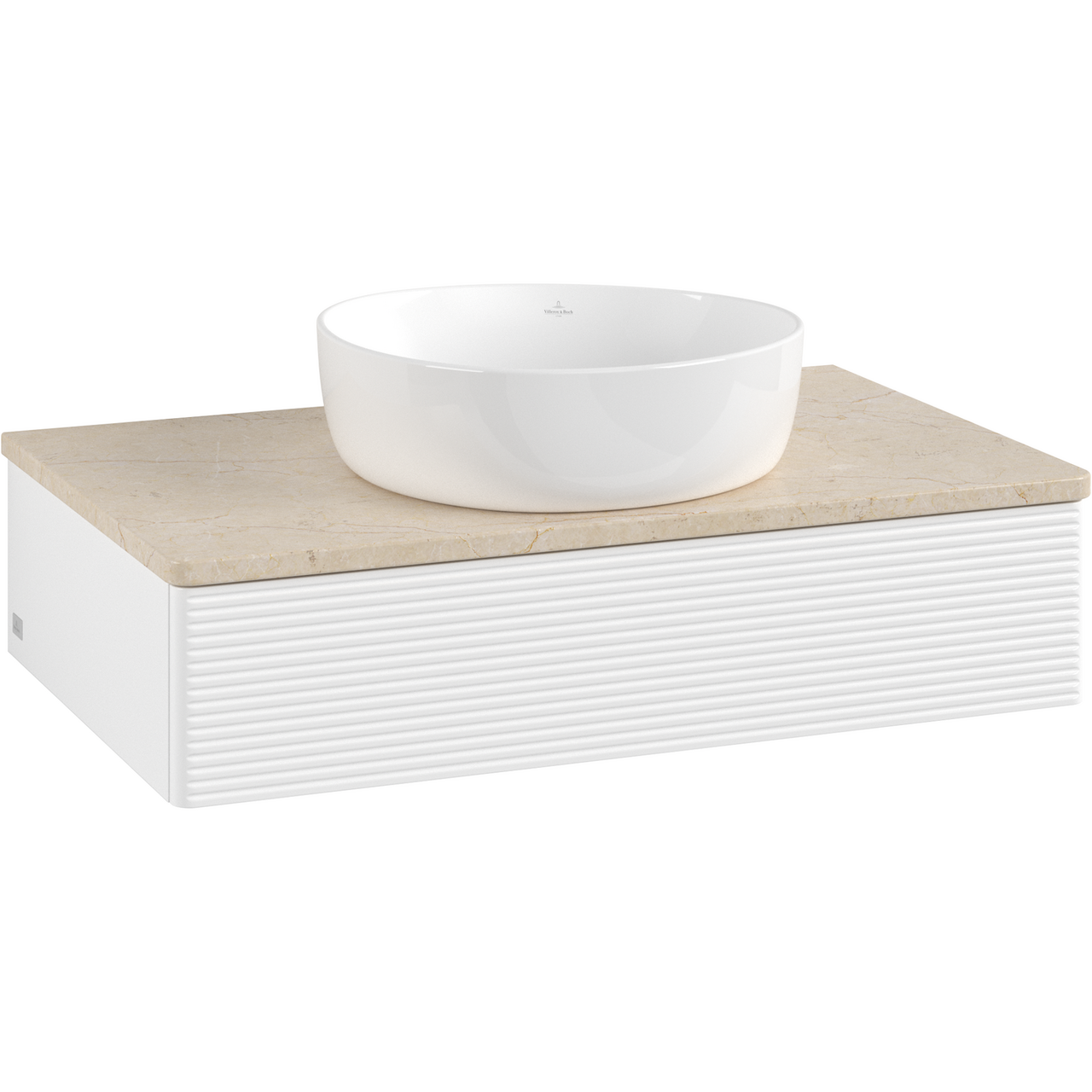 V&b antao servantskap 1 skuff rillet 800x190x500 u/kranhull m/lys matt hvit/créme