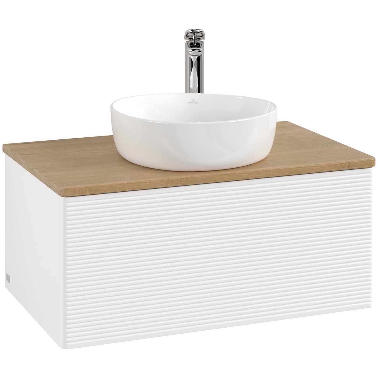 V&b antao servantskap 1 skuff rillet 800x360x500 m/kranhull matt hvit/eik