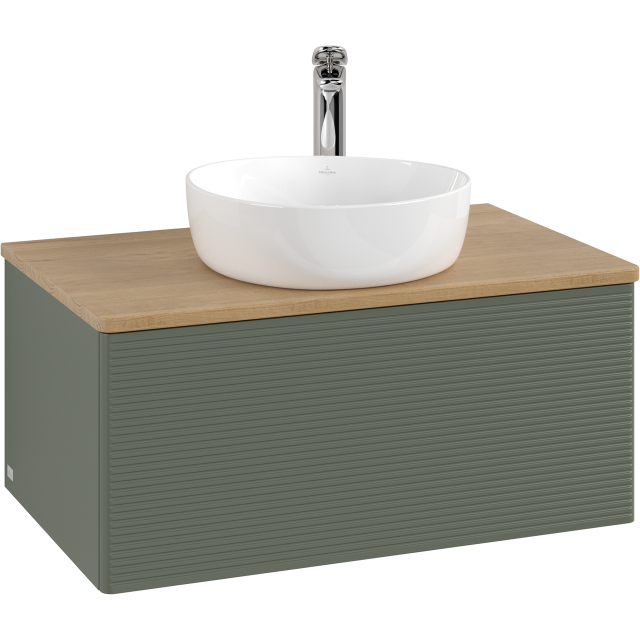 V&b antao servantskap 1 skuff rillet 800x360x500 m/kranhull m/lys grønn/eik