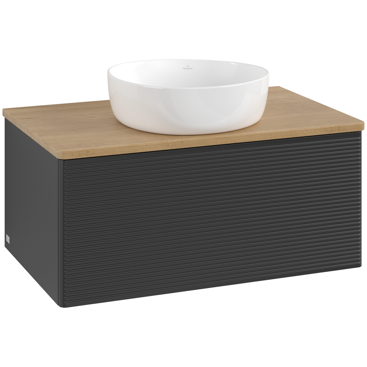 V&b antao servantskap 1 skuff rillet 800x360x500 u/kranhull matt sort/eik